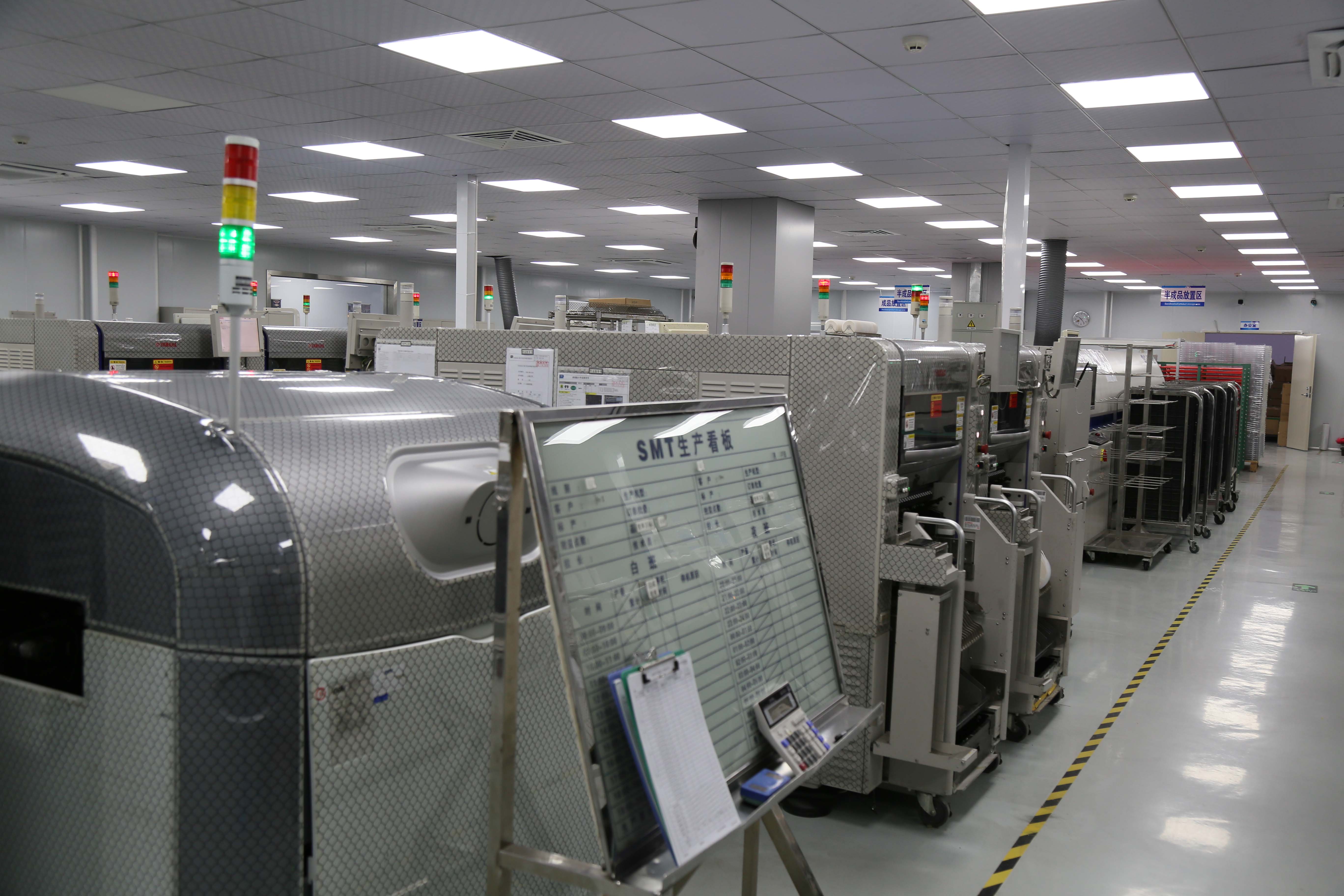 在凰津光电对LED透明屏参观结束后,向总带着周总一行驱车到凰津光电南沙LED常规显示屏生产基地。凰津光电LED显示生产基地有80条雅马哈SMT全自动生产线,主要生产LED 室内小间距显示屏、COB倒装显示屏、LED柔性显示屏、异形LED 显示屏等。产品主要应用到数字展厅里的3D效果展示LED 显示屏、政府会议用LED会议屏、沉浸式演绎用LED显示屏、交警监控室LED 显示屏、公安和消防指挥中心用小间距LED屏等!向总带着周总一行从LED 显示屏生产工厂的一楼灯珠来料检验到进灯珠进烤箱除湿,接着带领周总参观凰津LED显示屏出货前整屏老化车间,紧接着向总带领客人换上无尘服进入到LED显示屏厂家核心重资产区SMT贴片车间对每台设备性能和产品作业流程进行详细的讲解;周总是个谦虚的老总,也是个非常注意细节的老总,现场问到锡膏是否用的环氧的?SMT的尘级别在多少万级?炉温在多少度?炉温的正负公差是多少度?贴片结束后的检测方式?全程是我们凰津光电的总裁和技术工程全程陪同,二位对答如流,周总一行听完后频频点头。