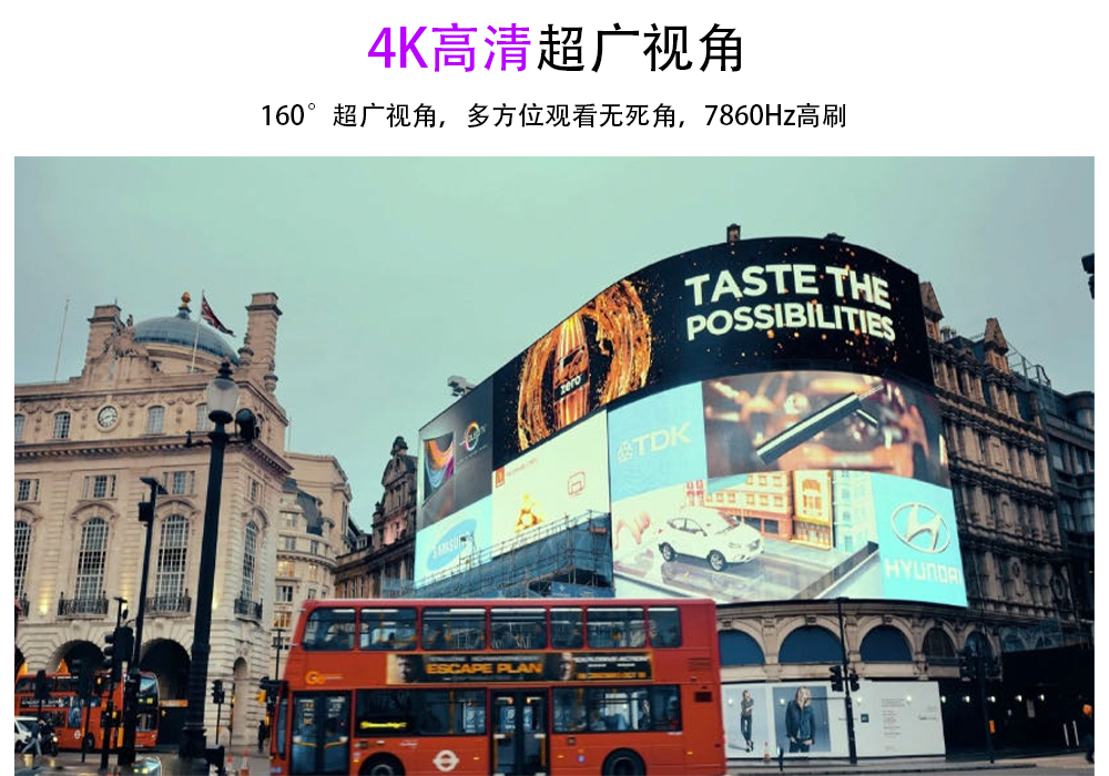 5.高刷新率与广视角:具备高刷新率,能够确保画面的流畅性和稳定性。同时,广视角设计使得观众无论站在哪个角度都能获得清晰的视觉体验。