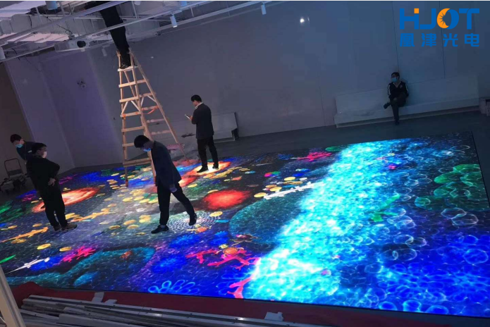 2.视觉效果震撼:呈现出全彩高清的显示效果,色彩鲜艳、对比度高,能够给观众带来强烈的视觉冲击。同时,由于其独特的地面安装方式,使得画面能够直接展现在观众脚下,形成独特的视觉体验。
